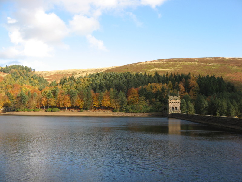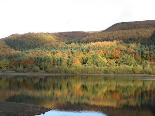 First thing on Monday friend and I went down to Bakewell to the market.  She has not been before so she enjoyed herself but I came away with a few things too.  Back at our peak district cottages one cleaner up to finish remaining cottages as three cottages were due back later in the day.  After lunch friend departed and I did the final checks in the cottages.  All guests arrived between 3 and 4 pm, all have been before.  In the evening Chris went to the Photographic Club and I caught up on some blogging.  On Tuesday we planned to catch up on some errands.  Told the dogs would only be a few hours as we set off but it was quite a pleasant morning and as we found ourselves up near the reservoirs we made a diversion to see how the autumn colours were.  I have been keeping the camera with me when we go out in case we come across any photo opportunities.  We drove up to Derwent and Howden dams and took some pictures.  We have always wanted to look at the sinkholes at the bottom of Ladybower reservoir so we stopped near the Yorkshire Bridge Inn and walked along the wall to look at the sinkholes.  Must come back and see them when there is more water around.  Came home via Hathersage and made a detour into the David Mellor (he is responsible for the traffic lights we see on the roads today) Centre, only because there was a large vehicle ahead and we decided we would let it get some miles ahead before we set off again so we were a little later back than I thought but never mind.  It had been another nice autumnal day.