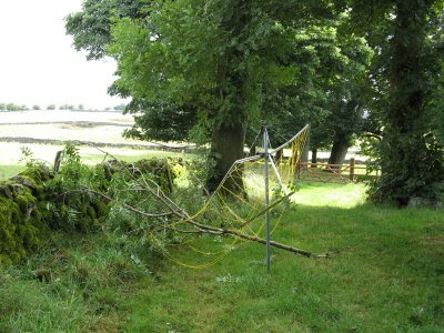 Took dogs out as usual this morning but with youngsters in front field went different way which meant I found the true damage of the winds on Thursday evening. In our new field a large branch was on the ground, at first I thought it was a small tree but when I looked I could see where it had fallen from. No damage to the wall luckily. Then I discovered that a branch had fallen on our outside drying line and smashed it! Will need to replace it soon as guests do use it in nicer weather. Six cottages out today with six back in and three cleaners up at our peak district cottages. Forecast was for sunshine and showers and with a number of departing overseas guests there were towels that needed to be dried as well as washing but the weather conspired against me again in the morning and with my laundry room out of use I had to find space around the house for things to dry. No problems encountered and cleaning finished before lunch. Time to finish everything before guests arrived but Chris hoped to tidy the lawn but further showers prevented getting the lawnmower out. Three cottages arrived between 3 & 4 pm (two have been before) with two more between 5 & 6pm and one just before 7pm having spent over 3 hours held up because of two accidents on the motorways. The weather did clear up in the afternoon and for a while a helicopter was hovering around, it was a leisure one and Chris’s pictures showed someone was using it to take pictures. We tried out the new kebab shop in Bakewell and I have to admit I enjoyed mine.