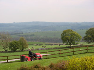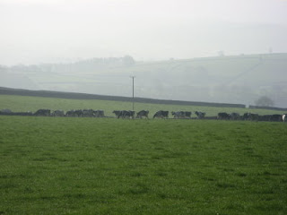 Friday was yet another dry day although mainly cloudy at our peak district cottages.  Four cottages out with three back in and two cleaners up during the morning.  No problems encountered and everything ready in time for guests arrival.  First cottage arrived about 3pm with the remaining two between 4&5 pm, both have been before.  At least Saturday was sunnier.  Got the phone call I have been waiting for just before 9am when Joana phoned to say the cows were about to be let out so rushed down the field with my camera and although I took a few pics it was still quite hazy.  So now our green landscape is dotted with black and white!  Three cottages out with three back in and two cleaners up.  A couple of problems for Chris to sort out but hopefully he has fixed them.  He also cut the grass again.  Two cottages here between 3&4 pm, one has been before, with final cottage arriving about 5pm.  One of the existing cottages had a balloon ride booked for this afternoon from Tissington and not long after their planned take off we could see two balloons in that direction.  There was also two taking off from Rowsly so the dogs had something to bark at!  After dinner I took the dogs out for a walk.  Spring seems to have truly sprung this week.  Leaves are out on the trees, the hedgerows are green and there is the sound of baaing on the wind.  (Green Cowden has finished lambing and most are now out in the fields).  It was a lovely sunset, forgot to take the camera of course, and there was a full moon.  Also could hear a curlew and a pheasant, our resident pheasant was in the front field earlier on.  The forecast is for a few pleasant days so that’s nice for the guests who are here this week.