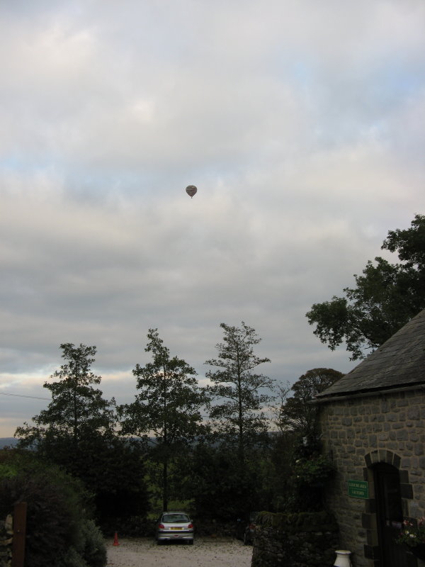 Monday started a bit damp and drizzly at our peak district cottages but it soon cheered up. Three cottages out and three back in and two cleaners up. A couple of minor repair jobs but the morning soon went. The three cottages all arrived between 3 and 4pm. After dinner we went to Over Haddon Village Hall where a meeting took place about closure of the public toilets (in the car park) in the village over winter. A representative from the council was there to discuss the options and I’m sure you’ll here more about this. Tuesday was another fine day but I spent most of it engrossed in WI work. There were a lot of balloons around today, two first thing when I took the dogs out, one when I went down to Bakewell and one later in the afternoon. I thought this one was going to fly right overhead but it just seemed to go up then down again. Had a couple of visitors call in to enquire about staying and a took couple of bookings too. Chris had taken Blue to Buxton so I took Smudge down to Bakewell with me when I went down to get some provisions for the next few days. Here are some photos of the balloons.