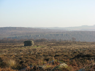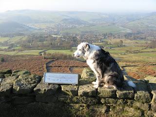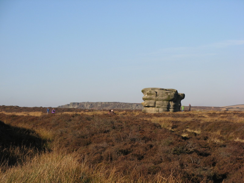 Woke up to a sunny and frosty start at our pet friendly cottages. Temperature was just above freezing but I thought it would be a nice day for a short walk. We set off for Baslow as I thought a walk in the sun with views would be be best. As we drove to Baslow the temperature dropped and it was still minus 4 when we parked in Baslow. There was still a lot of frost around as we set off on one of the footpaths below Baslow Edge. I waved to home at one of the spots I can see from our office but it was too hazy to make out anything in the distance. I guess because it was such a nice day there were a lot more walkers around than I expected. Despite the cold it was a lovely walk but each time I stopped to take a picture my glasses steamed up. There is a part of the walk that can be quite boggy but the cold of the last couple of nights had frozen the ground and there was only one spot where I got wet boots. There were some highland cattle in one field which Blue spotted but they were more interested in munching. One though came very close to find some water so got some nice clos up shots. Up on to the edge we continued to admire the views as we headed back to Baslow. Found a nice spot for lunch where we observed a number of planes at high level in the blue sky and used Chris’s phone app to identify them and waved at the plane en route to Washington at 35000 feet. How sad! Set off for the car and should have been able to see Chatsworth House but could only make out the outline of the house in the haze. After passing the Eagle Stone and on reaching Wellington’s Monument we picked up the track back to the car. Felt like a trip to the Peak Village Outlet Centre at Rowsley before going home and getting the fire on. Enjoy the pictures.