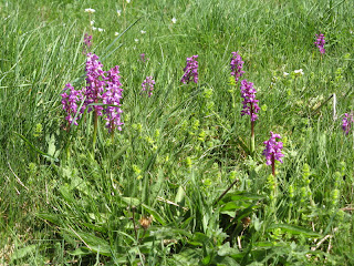 Sunday dawned sunny but breezy and after fetching the paper from Bakewell we set off on a walk from our peak district cottages. Today I had chosen Deep Dale the other side of Sheldon particularly as I hoped the orchids would be out. Deep Dale and Cressbrook Dale are well known for their orchid displays but with many plants out earlier than usual I wasn’t too sure if we had already missed them. We set off for Sheldon aiming for the Magpie Mine before taking one of the five footpaths into Sheldon. From Lower Farm we took the footpath heading towards Ashford but this timewe forked off through Little Shacklow Wood. At least this path was sheltered from the wind. Once we reached the River Wye we stayed on the footpath as it made its way through Great Shacklow Wood ignoring the two footpaths heading back towards Sheldon but noticing the bluebells. We finally reached the entrance to Deep Dale and as we turned into the dale we picked up the breeze again. As we looked back we had a fine view of Fin Cop. It took a while but we found a spot to have lunch out of the breeze. There were cowslips and some orchids but not as many as I hoped. We wondered if we were too late or whether the dry conditions had had an effect as there weren’t as many cowslips either. We took one of the paths out of the dale towards Sheldon and the wind really hit us as we emerged from the dale. We skirted the top of Sheldon and picked up the path back home. A quiet evening in but Monday will be a busier day.