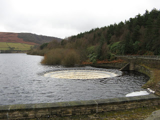 On Thursday we had hoped to get another walk in but the forecast indicated it would be raining by lunchtime. Our friends were meeting up with a couple of their friends for coffee so we met up with them afterwards and headed up to Derwent reservoir to see the water coming over the top of the dam. We had heard it was very good at the moment and we must admit we had never seen the water come over the dam with such force. We did a short walk along the local tracks then headed over to Ladybower to see the water going into the sink holes. We stopped for lunch at the Riverside deli just outside Hathersage then had a wander round Hathersage browsing in a few outdoor shops too. Despite the fact it always looked threatening it never rained so we could have had a walk after all. An early tea back at our peak district cottages then our friends departed for home. One arrival in the afternoon too. Enjoy the photos.
