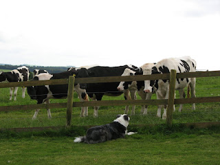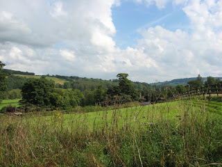 The forecast for Saturday was heavy showers and the morning got off to a misty start. Five cottages out and five back in so after saying goodbye to guests and hello to three cleaners headed off to the Farmers Market. I didn’t think it was very busy but some of the guests who went later said it was busy. Another Saturday with a prompt start to cleaning and with no problems this was completed by midday so my checks were finished by lunchtime. Despite the forecast it stayed sunny and warm during the morning and early afternoon. About three o’clock there were some rumbles and the sky had darkened over but it was going away from us. It continued to rumble for about an hour and we saw the first rain about 5pm. We were obviously lucky and missed the worst of the showers, during the afternoon we could see showers in the distance. Two cottages arrived between 3 and 4pm, two more arrived between 5 and 6pm with final one later in the evening. The forecast for Sunday had been for a fine day except we were the ones under a cloud in the morning with drizzle putting paid to a long walk. After lunch it started to brighten up so we opted for the Secret Gardens of Bakewell. This year they were in the south west sector of Bakewell. If you are driving from Matlock along the A6 as you get into Bakewell there is a 60’s/70’s estate on the left with Burton Closes Hall on the hillside. The Hall was designed by Joseph Paxton and is now a retirement home. The former Lodge to the Burton Closes Hall estate can still be seen from the A6 and was one of the open gardens. We parked near the cemetery further up the hill and took a footpath down to Bakewell which came out right where the gardens were. Although mainly bungalows in this area most of the gardens were on slopes and some had steep slopes at the rear which led up to a ha-ha. We were able to climb the slopes (at our risk) especially as the mornings rain had made them slippery and from one of the gardens you could see the towers of Haddon Hall but I didn’t want to climb up that slope. As usual many of the owners were on hand to talk about their gardens and the work they had done to get them to the state they were in, some had photos too. Nearer the hall some of the houses even had redwood trees in them just like the Chatsworth Estate. By the time we had done all the gardens we thought we would walk into Bakewell itself just in case we could find somewhere for afternoon tea but most were closing. We walked back to the car, stopping to photo the church and back at our peak district cottages we had time for tea on the patio before it got too cool. The dogs had the cows and a balloon to keep them occupied.