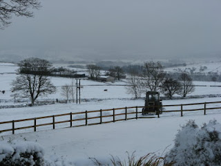 Woke up to a couple of inches of snow and out by 7.30 clearing the drive for the carpet delivery.  They phoned just before 8 to say they couldn’t get here so Chris has put off the delivery for a couple of days.  No cottages arriving or departing today but still work to do.  With a couple of empty cottages I took down some curtains for washing over the next few days and the handyman came up to carry on with his work.  Chris is a bit better today.  Andrew came up and cleared the drive properly with his snow plough mid morning.  Chris was able then to use his fertiliser/salt spreader which made salting the drive a lot better.  A couple of cottages stayed in all day and I went out early afternoon to get some logs from the log shed and took some pictures which gives you a flavour.  I know other parts of the country have got it worse but it is a nuisance when I really want to be out there in and out of cottages doing things.  Oh and I have reminded the handyman that we will have to be thinking about putting Xmas lights up soon!  Cooked a roast dinner but kept an eye on the weather the wind in particular was whipping up the snow.  I couldn’t see out of the office by late evening.  Checked with tomorrows arrivals at our peak district cottages that things were still ok with them so we will see what happens.