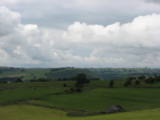 With a pleasant day forecast we chose to go for a walk, but first went down to Bakewell to do the recycling.  Once organised we set off for Great Longstone and managed to park in the village without a problem.  I like Great Longstone, it still has a shop and two pubs but doesn’t have a pretentious feel that some villages do.  Like many in the area it has a god community spirit judging by the posters for the various village events.  From the main street we headed for the church then out of the village using the network of paths to climb up to Longstone Edge.  From the top we had wonderful views across to Monsal Head, we could make out the top of the spire of Bakewell Church and we could make out the wood behind our peak district cottages and the village of Sheldon to name a few.  We walked along the track that in theory took us past the Bleaklow quarry then across to Back Dale Wood before heading down to Rowland and back across fields to Great Longstone.  We had attempted this walk about 18 months ago but a strong wind had forced us to curtail the walk.  Despite the fact we had a map the paths did not tie up with what we had and with the battery in the Sat Nav having gone flat we used landmarks and our judgment to work out where we were.  Luckily we came across a Park Ranger out on a wild flower hunt.  She was able to confirm our position and we realised we were making our walk more of a figure of eight rather than oval, but she did mention that due to quarrying there are a number of paths that aren’t on the map.  Whilst we were chatting she was able to point out some local plants like leadwort, I had always thought it was a larger plant so at least I know what it looks like. Within a few yards we were back on track and by now our view included Chatsworth House.  As we turned round the loop our view changed so now we could see across to Grindleford.  The track continued and soon we came across the Bleaklow Quarry.  Its the first time we have seen it close up and massive is a understatement.  We then took the rocky track that headed down to Rowland.  At the point we crossed it earlier on we stopped for lunch.  With the binoculars I was able to make out Andrews fields behind us and even see some of his cows!  I could see some of the trees that surround our cottages.  Down to Rowland then across the fields back to Great Longstone. No cows for lue to worry about today!   Back home for a cup of tea and catch up om emails and phone calls.