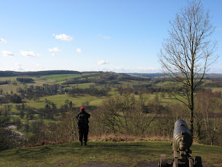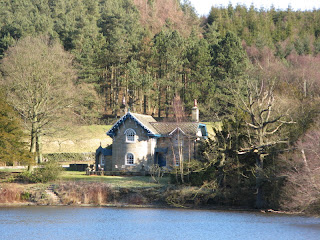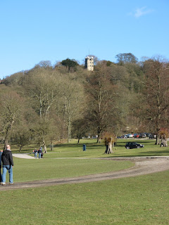 Sunday was a cold and sunny day and one of the first opportunities for a while to go for a walk. As usual we had a debate on where to go and I fancied Chatsworth as I thought with most holiday makers gone (one more cottage departed) it would not be too busy. Wrong! Carlton Lees car park was quite full by the time we got there just after 10.30. Kitted up we set off long the road to Beeley, crossing the river then taking the minor road up to Beeley Hilltop. In the sun we spotted a copse of very old trees that we don’t recall seeing before. Further up the lane we took a path that headed up to Stand Wood where the reservoirs that feed Chatsworth are situated. On the climb up we had some lovely views of the area and stopped and chatted with another local couple who were enjoying the views. We could make out Stanton Church and even the Bolehill plantation but not our peak district cottages. Into the woods the track was wide enough to be in the sun and we were able to see the lakes and also the Swiss Cottage, which we cannot remember seeing before. Soon enough we were at the Hunting Tower where we had planned to have lunch but I think half of Derbyshire were already having lunch there so we walked down to the parkland. The closer we got to the house the busier it became, although the house isn’t open again for a few weeks the restaurants and shops have been open and the farmyard was also open for half term (although we noticed none of the toilets were open despite the £2 car park charge). As we headed to walk along the river we noticed most of the scaffolding had come down and a we caught our first glimpse of the restored facade. Have never seen it so bright, the sun really picked out the features. Stopped by the river to have lunch before the final stretch through the parkland back to the car. As we were close to the Garden Centre I thought it would be nice to have a quick peek as I must start thinking about my hanging baskets! On the way home we called into our neighbours at Green Cowden Farm to see how the early lambing has gone. They had about three dozens lambs in the pens making a lot of noise! The main lambing starts in a few weeks time so we shall call in again then. After an early tea we picked up Andrew and Joanna and went to the Village Hall at Over Haddon for this months film which was The Adjustment Bureau. An interesting film which we all enjoyed and as it was not a long film we were home in time to watch the new series of Upstairs Downstairs, except I found a number of emails waiting for me so I didnt get to see it after all!