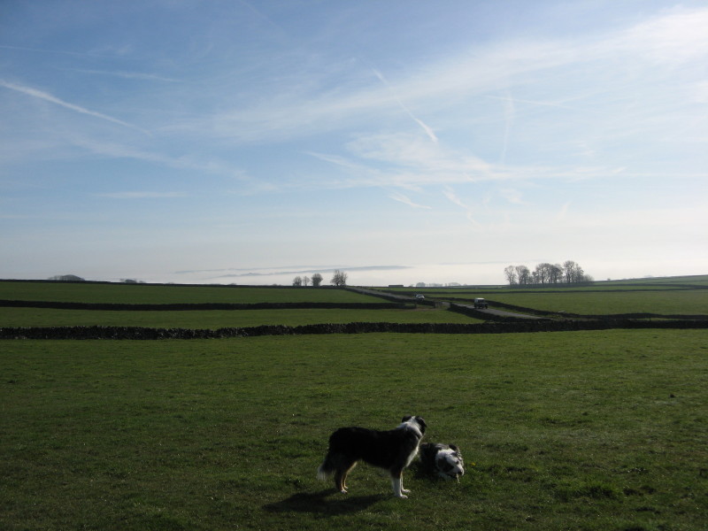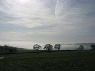 Sunday started bright and sunny and first thing the mist as settled in the dales making for some nice pictures from our peak district cottages.  With the clocks having changed Chris had his changing clock routine to go through.  One cottage departed and we decided to go to Haddon Hall as it had a Peak District Artisans Fair with a nominal entry fee to Haddon Hall.  On the way there we did some recycling.  We have never been to Haddon  Hall so early in the year and with trees not yet in leaf a lot more of the Hall was visible so we took a lot of photos.  We had also watched the John Sergeant programme on photography the previous night and seen the photos of Haddon Hall (as well as Chesterfield and Eyam).  We had a good look at the wares on display and I bought some cards.  The only disappointment was that the gardens were not open as it would have been nice to see the views from the terrace.  After a late coffee we set off back for home through Bakewell which was very busy but before we reached home we called in to Green Cowden Farm to see how lambing was going on.  Whilst we were there a sheep gave birth to two lambs but we stayed a distance so as not to frighten her.  I tried taking some pictures of the cades (rejected lambs or a triplet that cannot be cared for by mum) but they were bouncy so none of my photos came out well.  Chris has put his good one on Facebook.  The weather is good enough for the lambs to go out into the fields in a couple of days and there are already some out. Back home had lunch on the patio with the clearest of views before our guests arrived, they had been before as B and B guests a number of years ago.  Time for some jobs around the house before sitting down for the evening.