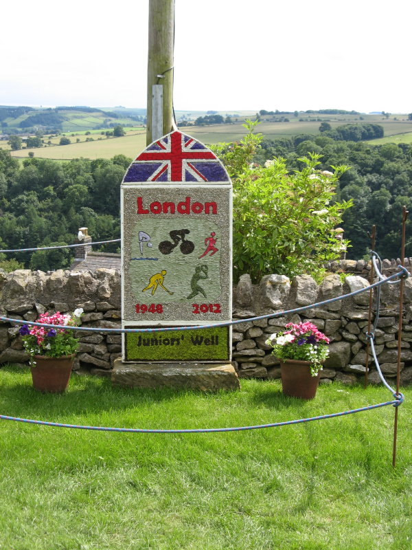 Sunday (15/7) was forecast to be a fine day at our peak district cottages so we decided to go for a walk. We said goodbye to one cottage and after picking up a paper in Bakewell drove to the lay by at the Monyash end of Lathkill Dale. The aim was to walk along the dale to Over Haddon and back home. We had walked the dale on Boxing Day after a wet spell so it would be interesting to see how much water was coming from the source cave. The other difference was that the trees were out so I will have to compare the photos. Starting at the more open end of the dale it soon closed in and we tackled the more rocky bit before it opened up again and we came across the source. On Boxing Day it was gushing out whereas on Sunday it was flowing nicely. The level was lower than at Christmas and we knew that because we could cross the river at this point whereas at Christmas we had to retrace our steps to find a place to cross at. From here we entered the more wooded part and the path was more defined and soon we were in the Nature Reserve with the first of the weirs. At the point where the old drovers track went up to Haddon Grove Farms we found a sunny spot for lunch, but I had to move quickly when I found I was sitting on an ants nest! While we were having lunch one of our postmen, who is also a photographer, walked down the track with his new dog so our two said hello. As he knows more about the wildlife of the dale he told us about slow worms and where they could be found. After lunch we continued our walk along the dale and as it was so nice we walked all the way to Conksbury Bridge then up to our picnic stop. We stopped for a few minutes to have a drink of water and let the dogs have a drink but Smudge was more interested in some cream crackers he had found. There were a number of DofE groups around so I assumed one of them had had lunch there and left them behind. Needless to say there weren’t any left after Smudge found them. When we got to Over Haddon we found the village hall was open for tea and cakes as the well dressings were on display. I usually try to go and help for a few hours but couldn’t this year. It was a very good one too, one of the better ones I have seen this year. After tea and cakes sitting outside the village hall in the sun with the view we walked the last part of the journey back home. Unfortunately in the first field there were some cows so as soon as Blue saw them he jumped over the wall into the next field. Further along he jumped back and then when he saw there was still cows in the field he jumped backed over and waited for us at the next stile. Back home we drove back to Monyash to pick up the car and an ice cream from the Smithy (Chris put it in a container for me to enjoy when I got back). It was St Swithin’s Day and despite the nice weather it wont be like this for the next forty days. There is a hint of better weather from next weekend? Enjoy the photos