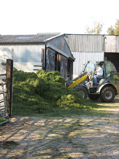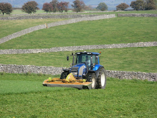 Thursday was a very warm day at our peak district cottages which got off to a dark start as we had a planned power outage for a few hours so remedial works could be carried out following the power problems a few weeks ago. Chris stayed at home while I went down to Bakewell to get provisions for the weekend. At least by the time I came back power had been restored and Chris was checking all the timer switches. He had even got the generator ready just in case. Usually on a Thursday afternoon Chris goes to Over Haddon for the digital workshop but decided not to. One reason was the amount of leaves that already seem to be accumulating in the car park so both of us spent a few hours in the gardens doing some tidying up and leaf clearing and pruning, even in the heat! Andrew started the third silage and the grass was cut in the fields behind us in the afternoon. This is the first time since we have been here that we have seen a third cut. As it was a warm evening we had dinner outside. With no-one in or out on Friday we thought we would have a little more time off. The rowing machine was up mid morning to do the next stage of the silaging. Some of the milk cows are staying in overnight now and we only have the ‘hooligans’ left on this side of the road. Too warm for a long walk but we decided to walk down to Over Haddon for lunch at the Lathkill. We were able to get one of the outside tables for lunch and enjoy the views and the sun! One of our guests had also stopped there for lunch. The temperature peaked at 25C beating Thursday’s 24.2C. When we walked back we stopped off at Andrews to see how they were getting on. Andrew was piling up the grass and I had hoped to get a ride on one of the tractors back to our place but they were just finishing collecting so never mind, I can wait until next year. Anyway, here are a few photos.