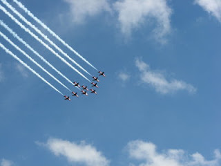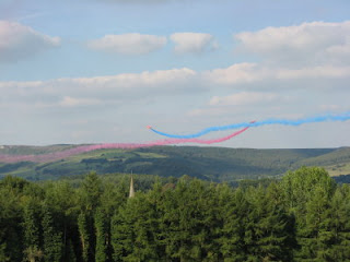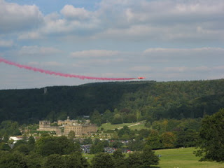 After a lot of deliberation here are a dozen pictures from the Red Arrow display at Chatsworth House, not far from our peak district cottages.