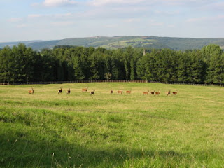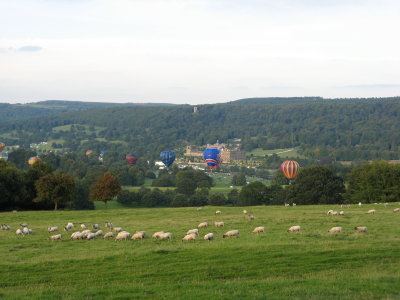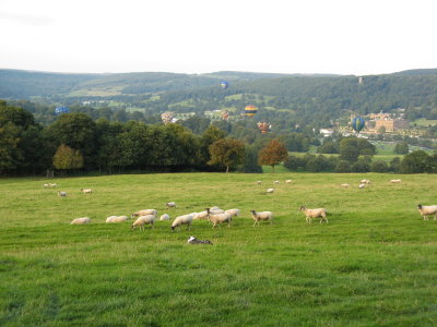 Here are the first lot of pictures which are of the walk to Chatsworth, some shots of the Country Fair in the distance, some deer that wandered by as we picnicked, the balloons and the sunset as we walked back. On has a balloon the other actually has Bolehill on the horizon so we could have got some good shots of the setting sun from the fields behind us had we been home at our peak district cottages.