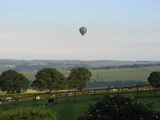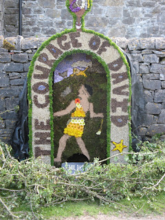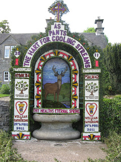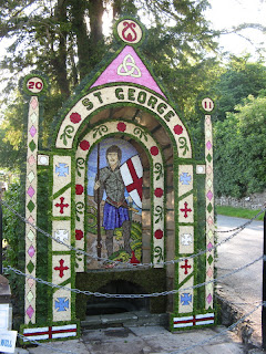Thursday was a glorious day which was spent on bits round the house and garden at our peak district cottages.  In particular I brought the hanging baskets out of the green house and down to a sunny spot outside one of the cottages where they can harden off for a few days.  I still have a number of plants waiting to go out in troughs etc so hopefully I can start on those soon. Had my first ice cream in a while!  Silaging is continuing with rowing up and collecting also starting to take place.  When I took the dogs out for their early morning walk I could see some of the big machines arriving on the farm. The Tissington well dressings started today and with the warm weather thought it would be a good idea to see them asap.  As it will be busy during the day we went late afternoon when it was less crowded and easier to take photos.  There are always some side stalls like the Ashboune Animal Rescue and local residents have stalls selling home made produce, but the village also has a renowned butcher who was open late so we were able to get some provisions.  We also saw the lord of the manor having a wander round.  Later in the evening the weather was good enough for some balloons to take to the sky.  This got the dogs going!  Enjoy the photos.