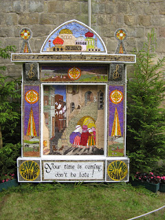 Monday was hot. I’d forgotten was hot was like! Not just hot but humid too. One cottage out with one back in and one cleaner up at our peak district cottages. Usual Monday tasks and despite the heat found some time to do some gardening. Guests arrived about 5pm, they have been before. It was a warm enough evening to sit out and eat dinner al fresco. After a few rumbles in the night Tuesday dawned fresher. One cottage departed Tuesday was one of those days that seemed to go in a flash and before we knew it it was mid afternoon and our friends from Yorkshire were here. As they have never seen well dressings in their glory we made Youlgreave our first stop in the evening as theirs are one of the better ones. They were up to their usual high standard but the hot weather of the previous couple of days had taken its toll on one of the wells. So here are the pictures of Youlgreave’s dressings. Following our stroll around the village we went to the Lathkil Hotel at Over Haddon for a meal.